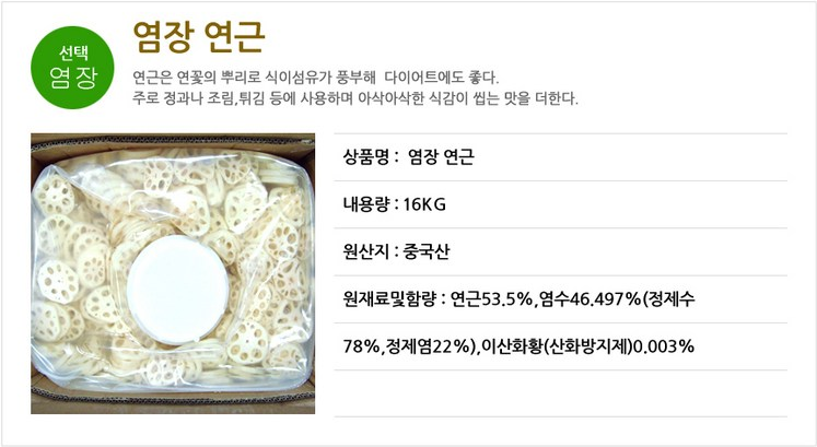 품목 또는 명칭 | 염장 연근16kg 중국산 |