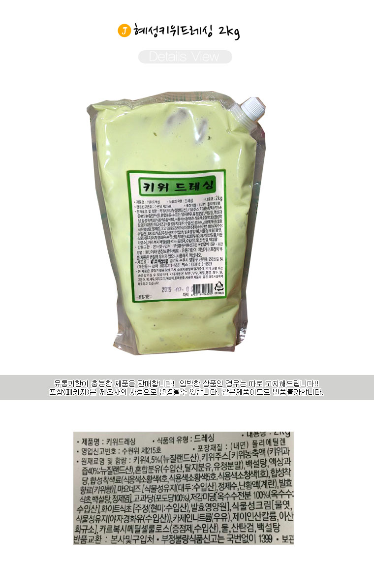 품목 또는 명칭 | 혜성 키위 드레싱 2kg |